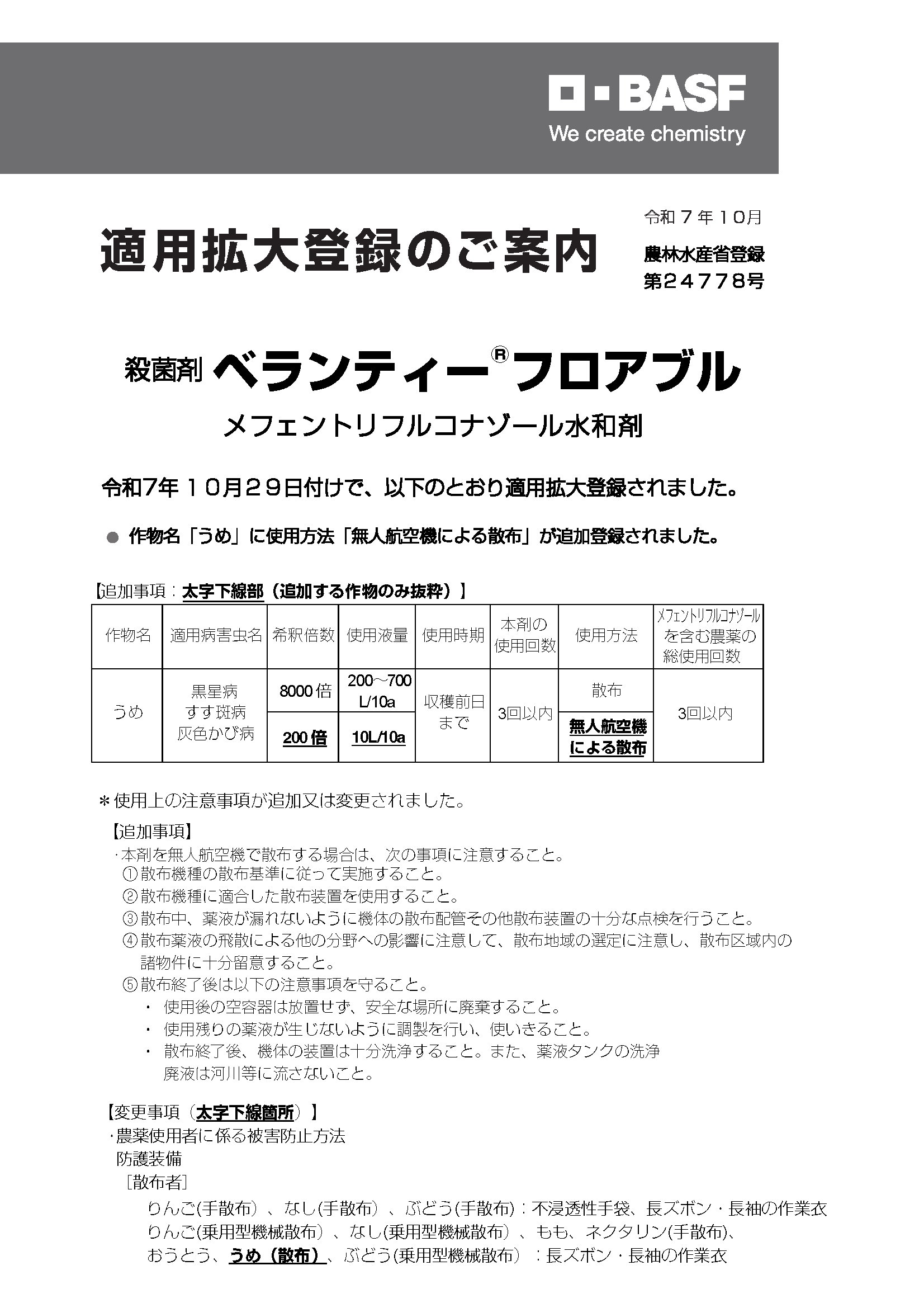 【殺菌剤】 第24778号 ベランティー®フロアブル: 添付PDFのとおり