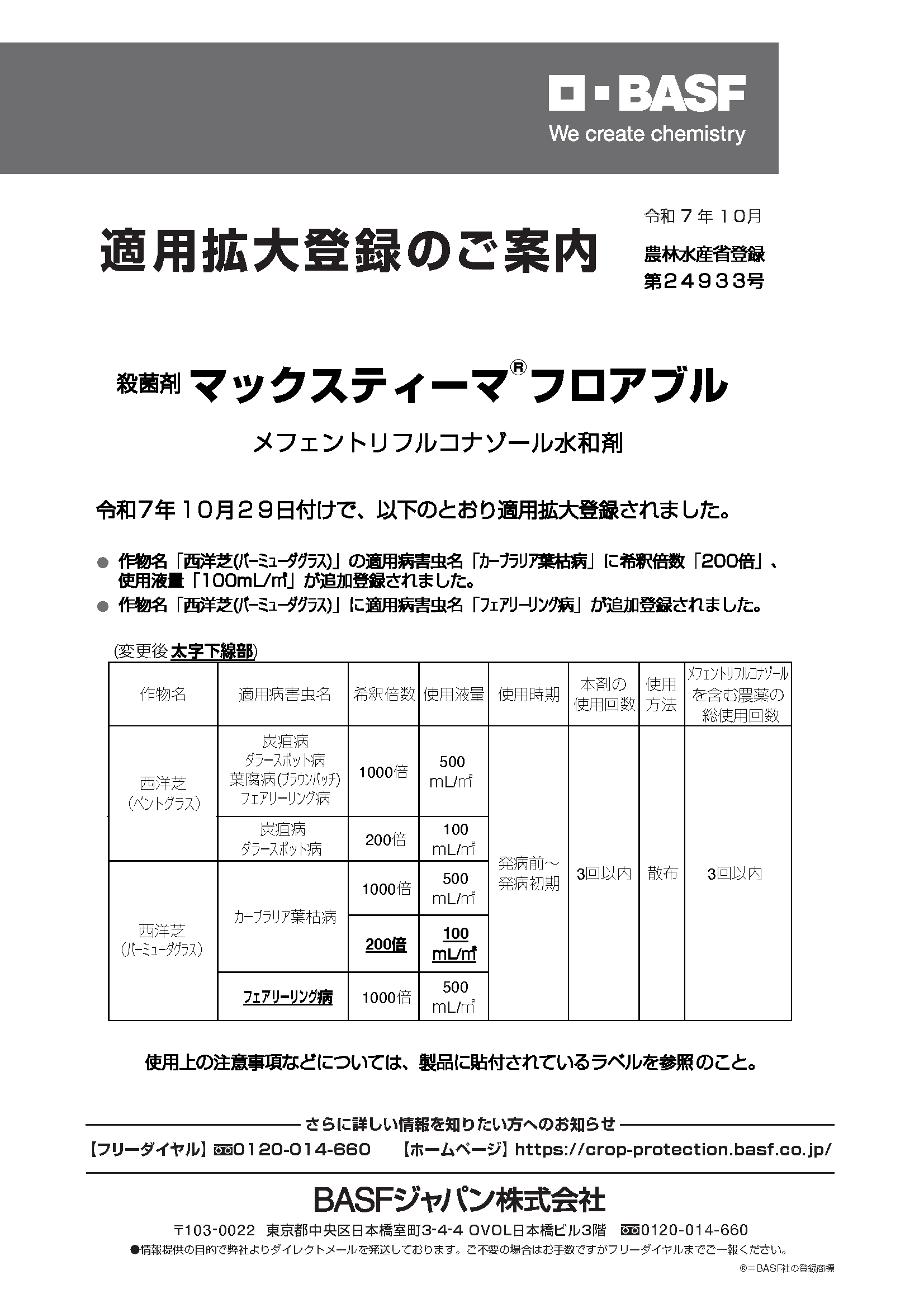 【殺菌剤】 第24933号 マックスティーマ®フロアブル: 添付PDFのとおり